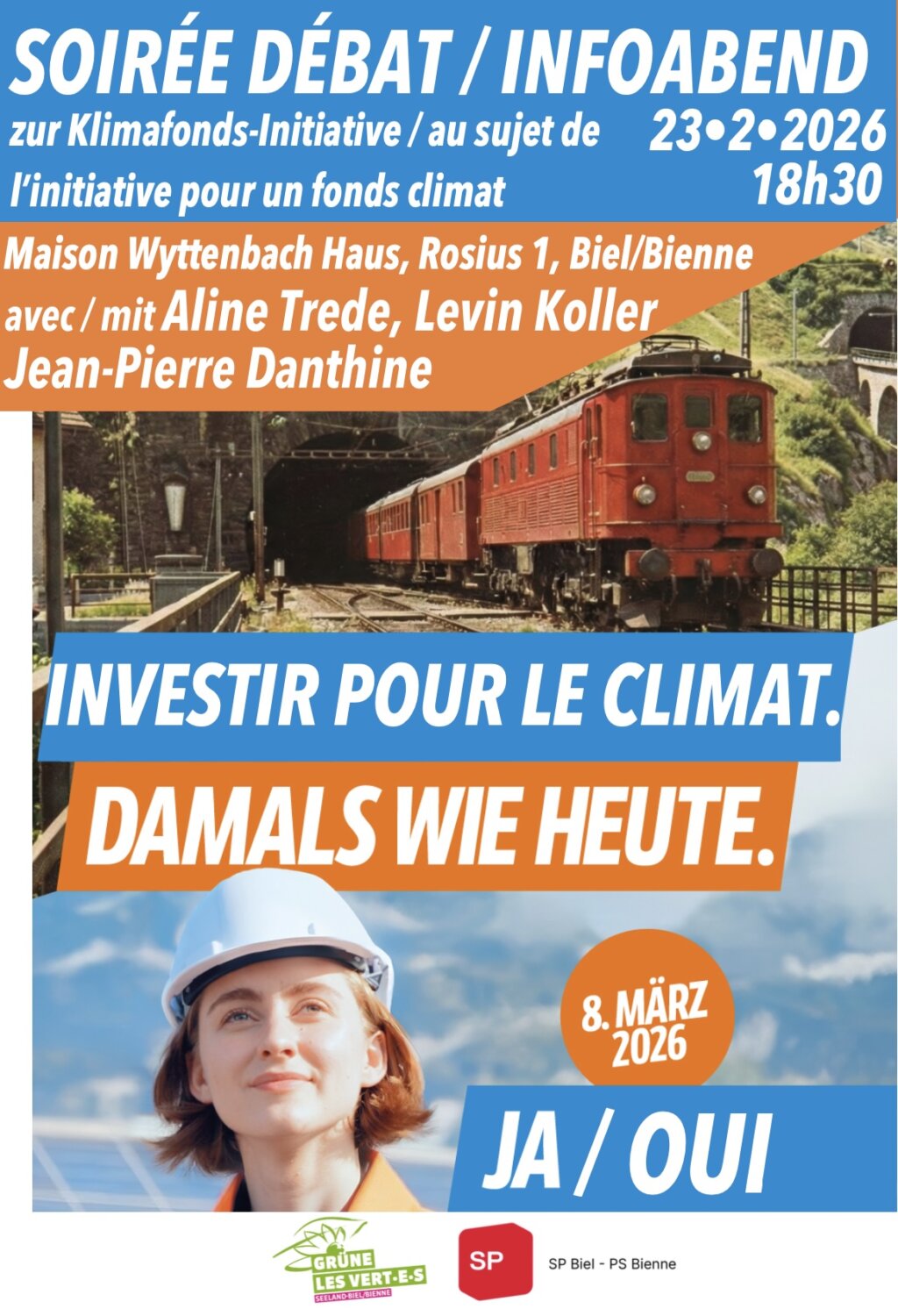 La crise climatique s’aggrave de jour en jour. Mais les partis bourgeois ignorent les faits et coupent dans la protection du climat. C’est à nous toutes et tous d’initier le changement : Oui au Fonds climat le 8 mars 2026 !