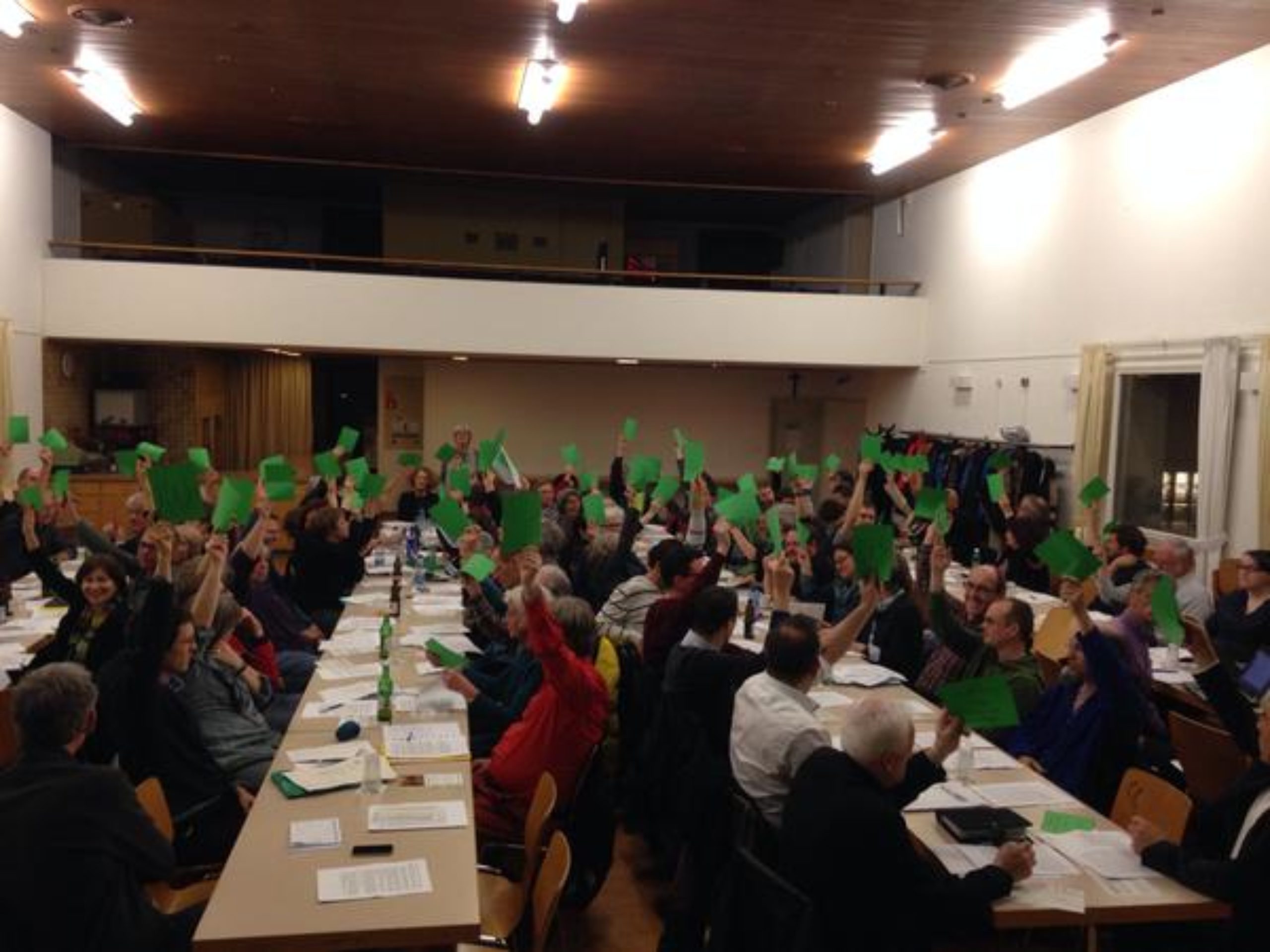 Die Grünen Kanton Bern eröffneten ihre Ständeratskampagne an der Delegiertenversammlung vom 5. Mai mit einem überparteilichen Podium. Unter der Leitung von Journalistin Lisa Stalder diskutierten die Grüne Ständeratskandidatin Christine Häsler, die beiden Ständeräte Hans Stöckli (SP) und Werner Luginbühl (BDP), FDP-Kandidatin Claudine Esseiva und SVP-Nationalrat Albert Rösti. „Die Schweiz und der Kanton Bern geben heute ein Bild wachsender Gegensätze ab, die soziale und wirtschaftliche Ungleichheit nimmt zu“, sagte Christine Häsler auf dem Podium. „Dieser Entwicklung möchte ich als Ständerätin entgegentreten“, so Christine Häsler.