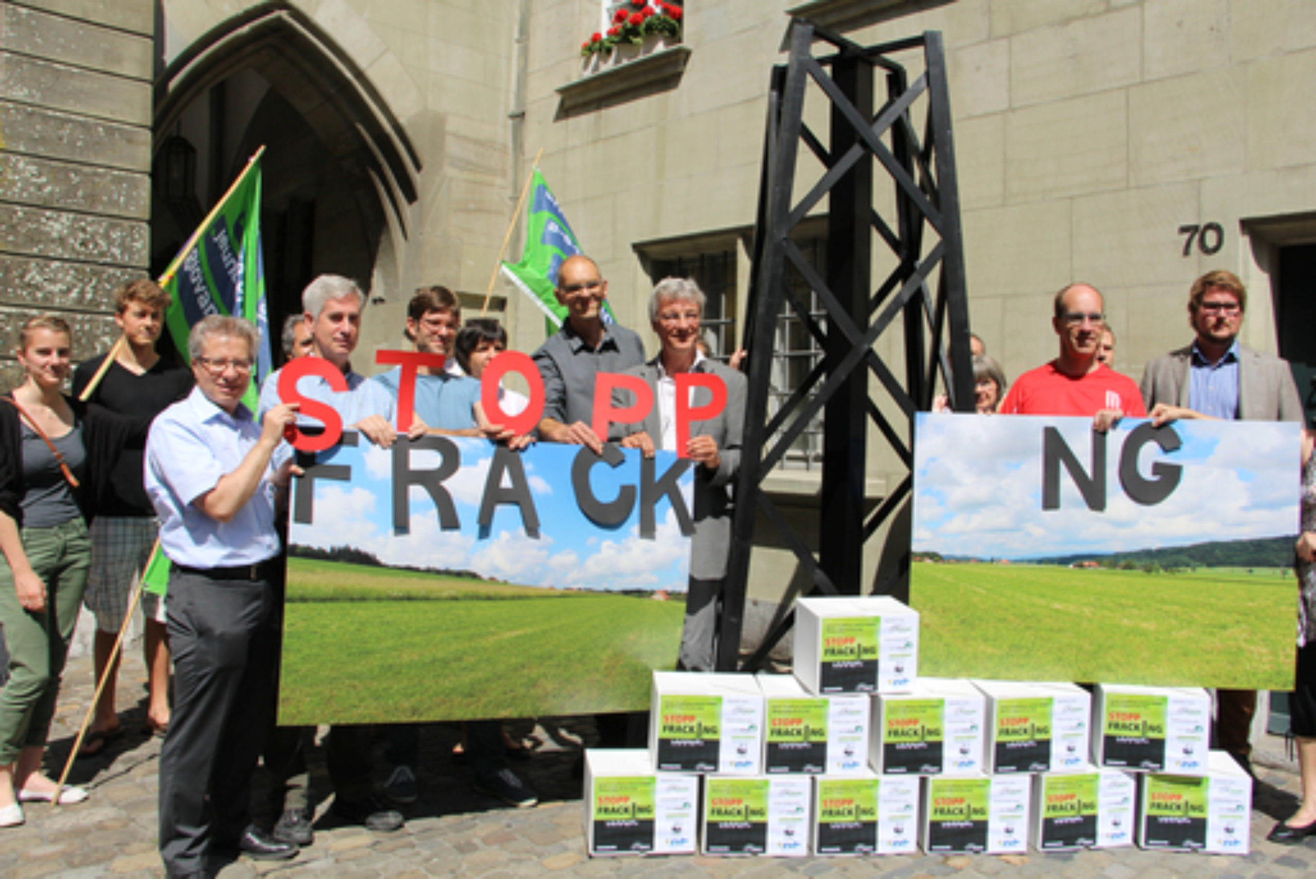 Die Grünen Kanton Bern nehmen mit Befriedigung vom Antrag des Regierungsrates Kenntnis, die Stopp-Fracking-Initiative zur Annahme zu empfehlen. Die im Juni 2014 mit über 17’900 gültigen Unterschriften eingereichte Initiative verlangt, dass die Förderung von Erdgas und Erdöl aus nicht-konventionellen Lagerstätten im Kanton Bern verboten wird. Der beim Fracking verwendete Chemikaliencocktail bedroht die Qualität der Grund- und Oberflächengewässer und damit des Trinkwassers; Fracking untergräbt die Energiewende, führt zu Landverschleiss und stärkt im Gegensatz zu erneuerbaren Energien nicht die einheimische, regionale Wirtschaft, sondern ausländische Grossfirmen. Vor diesem Hintergrund ist es nichts als folgerichtig, dass der Regierungsrat die Verankerung eines Fracking-Verbots unterstützt. Der Regierungsrat nimmt mit seinem Antrag auch den Auftrag des Grossen Rates auf, Fracking im Kanton Bern zu untersagen.