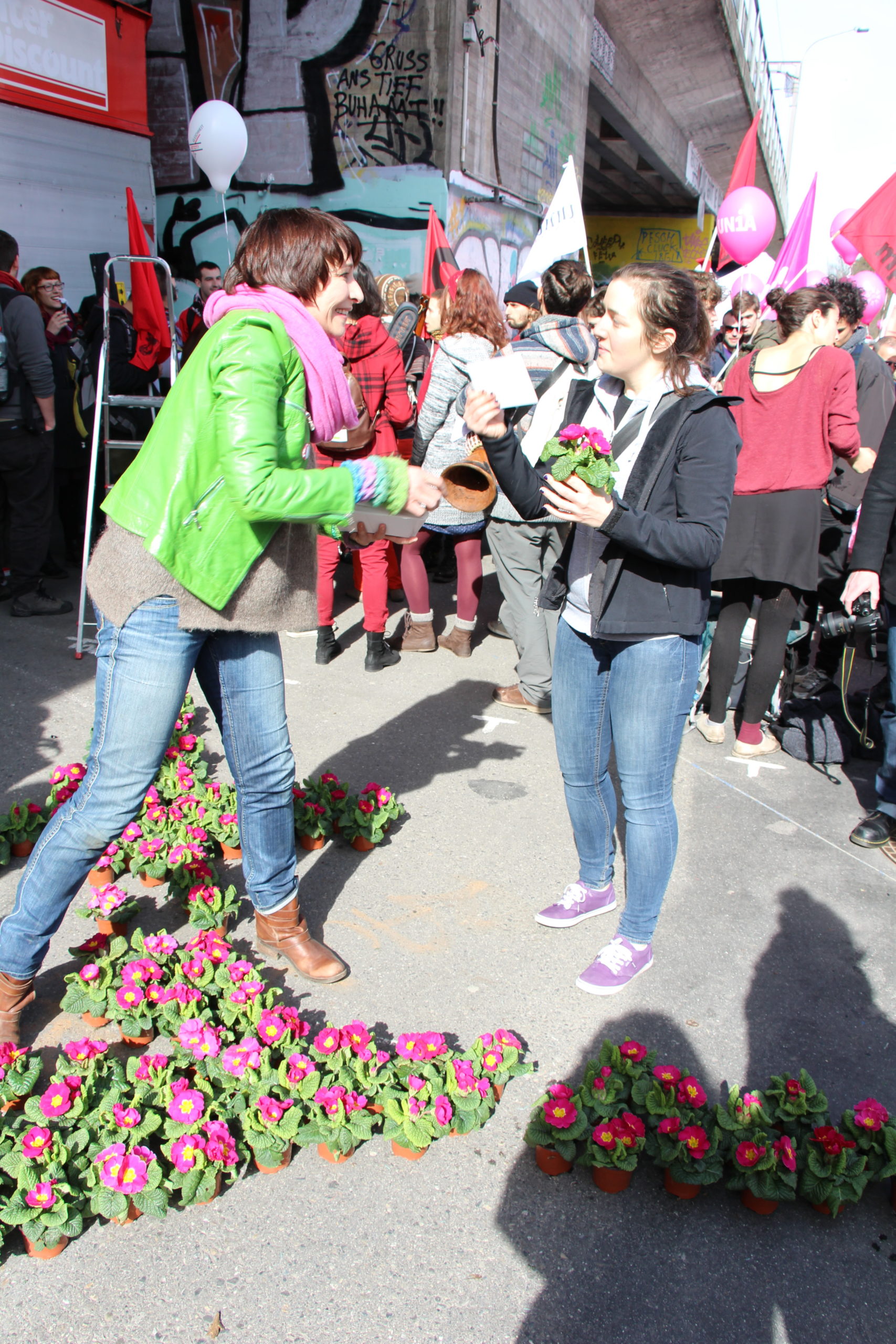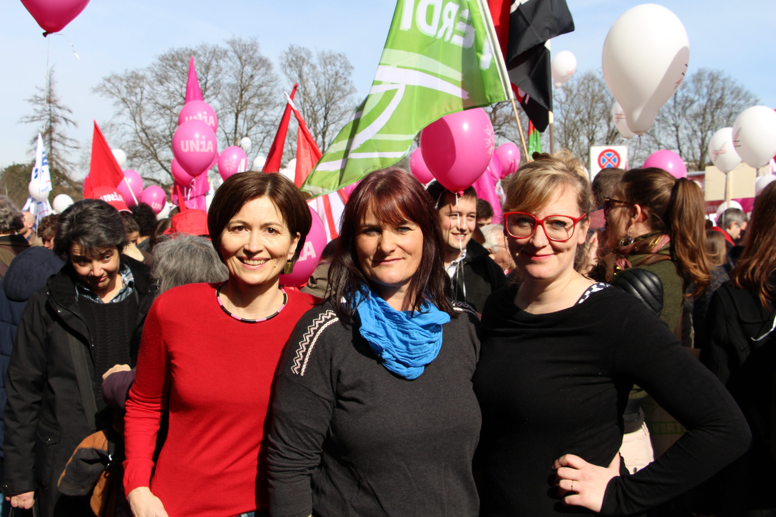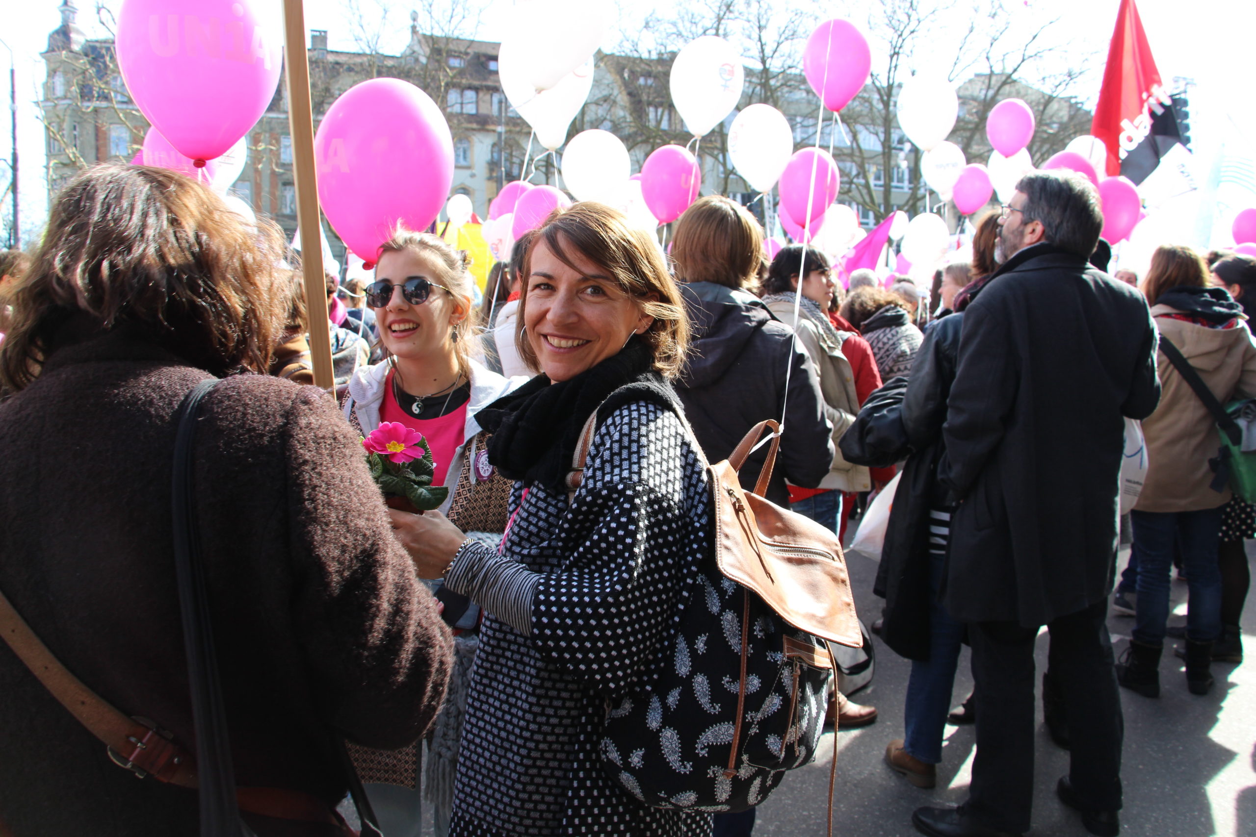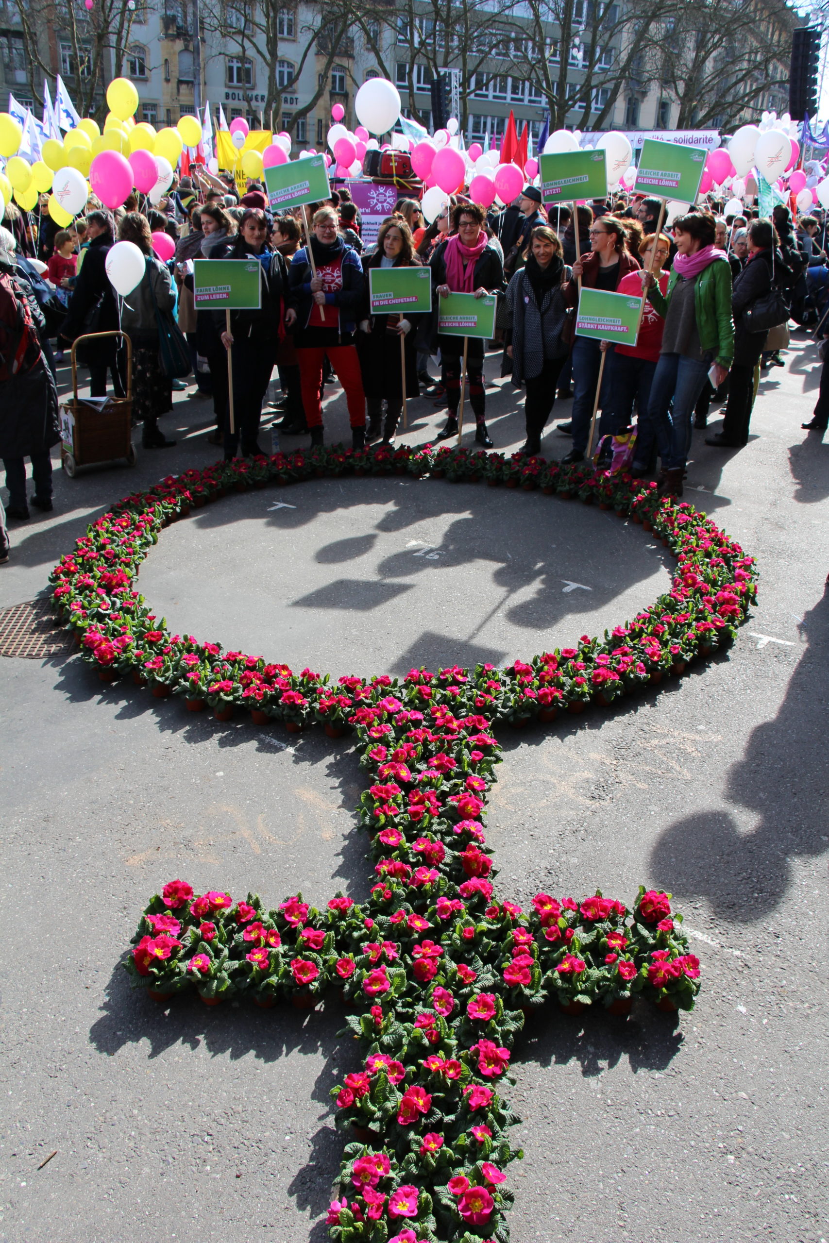 Frauen verdienen in der Schweiz 18,9 Prozent weniger als Männer. Sie müssen somit bis zum 9. März, dem „Equal Pay Day“, arbeiten, um für gleichwertige Arbeit denselben Lohn zu erhalten, den Männer schon am 31. Dezember des Vorjahres in der Tasche haben. Ein breites, parteiübergreifendes Bündnis von Frauenorganisationen und viele Frauen aus der Wirtschaft haben mit Blick auf den internationalen Frauentag und den Equal Pay Day zu einer nationalen Kundgebung „Lohngleichheit jetzt“ in Bern aufgerufen. Gemeinsam mit den Nationalratskandidatinnen der Grünen haben Ständeratskandidatin Christine Häsler und die Nationalrätinnen Regula Rytz und Aline Trede an der Kundgebung heute pinkfarbene Primeln verteilt.